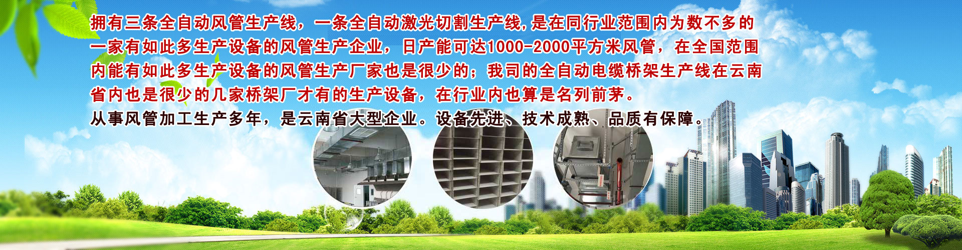 云南大军暖通设备工E有限公司是一家专业生产通风道、通风讑֤、电(sh)~桥架的风管加工厂家。云南大军暖通专业从事:(x)风管加工、通风道、通风讑֤Q风机、风阀、风口、消声器、防火阀Q、电(sh)~桥架、PP风管、镀锌板、通风净化系l的Ҏ(gu)设计、销售选型、施工调试、售后保L务? 云南大军暖通设备工E有限公司成立于2016q?2?2日,现已拥有三条全自动风生产线Q一条全自动Ȁ光切割生产线,是在同行业范围内为数不多的一家有如此多生产设备的风管生企业Q日产能可达1000-2000qx(chng)c风,在全国范围内能有如此多生产设备的风管生厂家也是很少的;我司的全自动늼桥架生U在云南省内也是很少的几家桥架厂才有的生产设备,在行业内也算是名列前茅。设备先q、技术成熟、品质有保障。可为广大客h供更快的生速度Q降低生产成本,提高工作效率Q羃短施工周期? 公司自成立以来,׃直把成ؓ(f)一家积淀(wn)深厚的百q老店作ؓ(f)q求目标Q努力汇聚业界精英,实时汲取国内外先q的讑֤、材料、技术、信息及(qing)理Ҏ(gu)和经验,为客h供优质、适用、经的产品、服务及(qing)一站式解决Ҏ(gu)Q企业在激烈的?jng)场竞争中始l保持竞争力和敏锐度Q在普遍q求“大而强”的时代里,我们却选择?jin)追求“小而美”。因Z注,所以专?-从而以口碑在行业内牢牢获取?jin)一席之地?